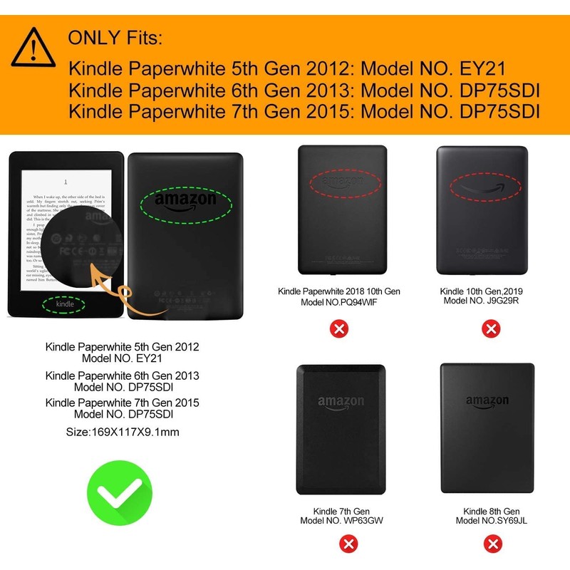 - Compatibility: This case only fits older versions of the 6 inch Kindle Paperwhite (version 2012-2017, 7th/6th/5th Generation, Model Number: EY21/DP75SDI) Please note: not suitable for 6 inch Kindle Paperwhite 10. Generation 2018 (Model Number: PQ94WIF) or 6.8" Kindle Paperwhite 2021 (Model Number:M2L3EK/M2L4EK) or Kindle 10. Generation 2019 (Model Number: J9G29R). Please check the model before purchasing
