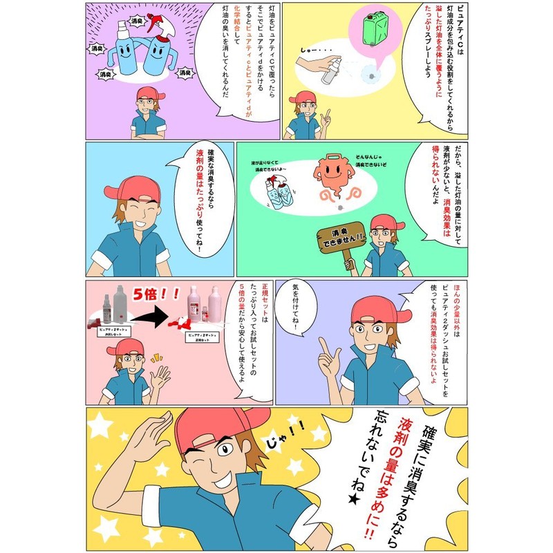 - Important: The Pure 2 Dash Trial Set can deodorize only when the amount of kerosene spilled is a mere amount of kerosene. Otherwise, it will not deodorize. Please use genuine Pure 2 Dash set (sold separately)
