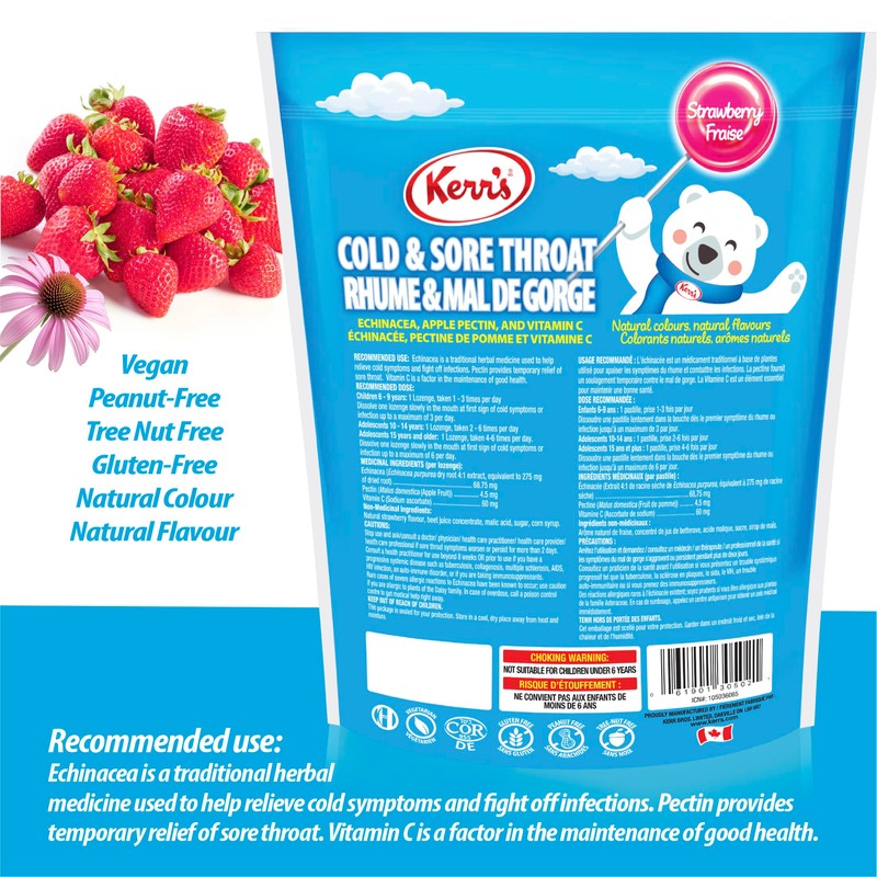 Kerr's Strawberry COLD & Sore Throat Kids Lozenges 2x15 count