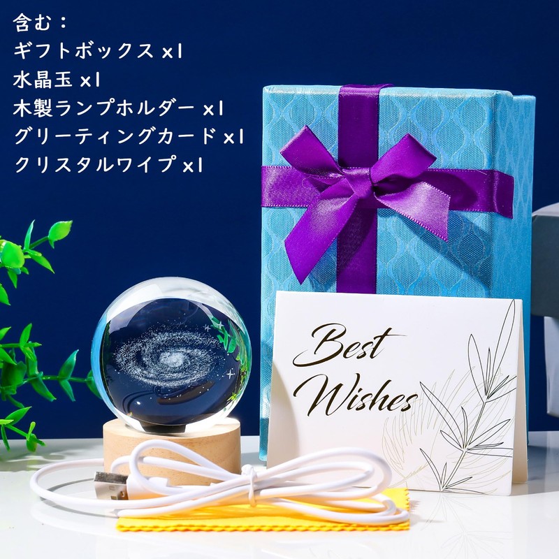 - (Gift Wrapped) Package Includes: 1 x Crystal Ball (2.4 inches (6 cm), 1 x USB Cable, 1 x Celebration Card, 1 x Beautiful Gift Box, 1 x LED Light Base (2.4 inches (6 cm)). This product can be given as a gift for your wife, girlfriend, anniversary gift, Valentine's Day, Christmas, birthday gift, wedding gift, Valentine's Day gift, etc. Makes a unique and precious gift