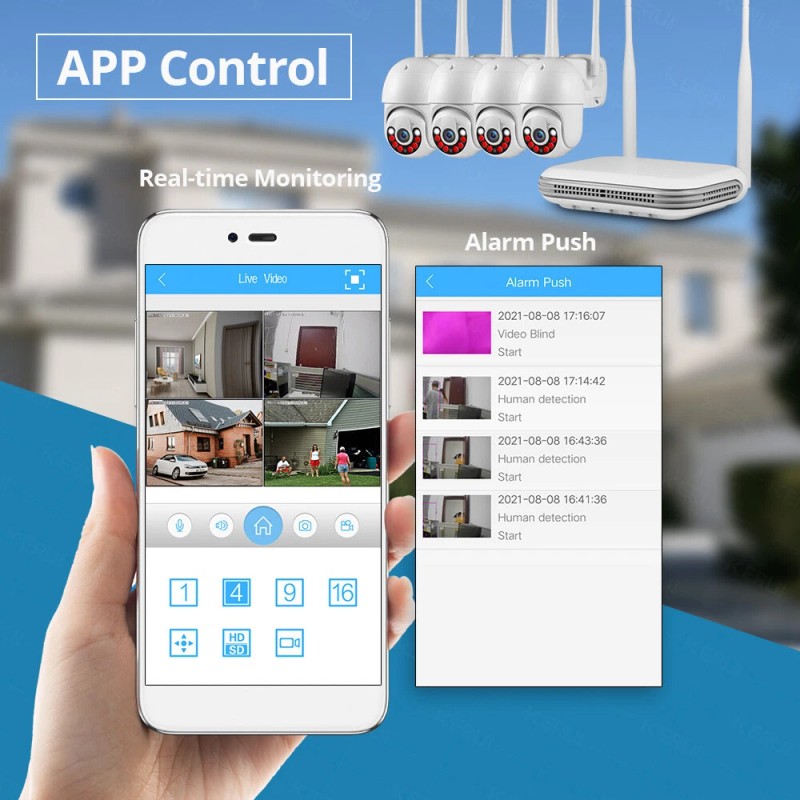 KERUI 3MP HD H.265 Waterproof PTZ WIFI IP Security Camera Wireless CCTV System 8CH NVR Two Way Audio Video Surveillance Kit