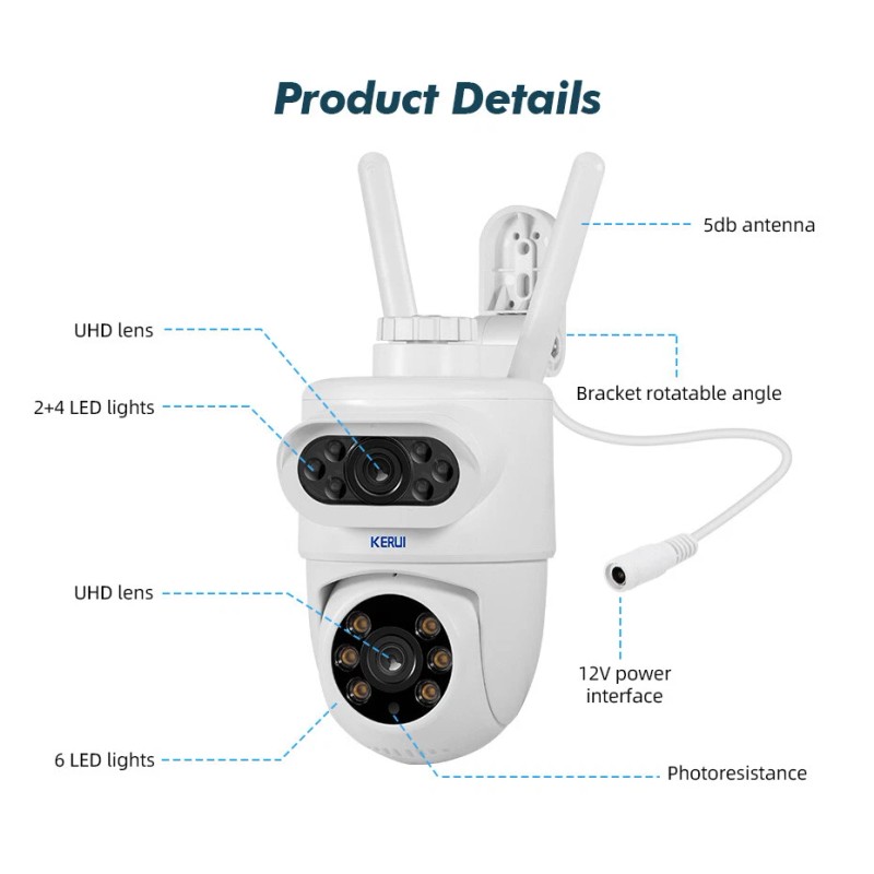 KERUI Outdoor 10MP 5K HD Dual Lens WiFi IP Camera Tuya Smart PTZ Wireless CCTV