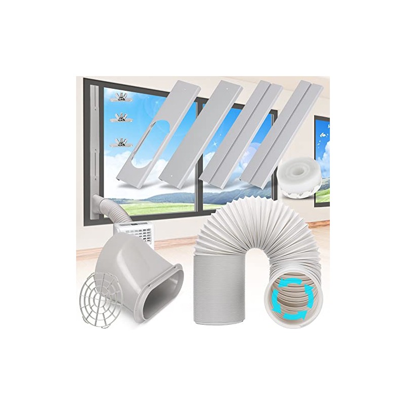 - 【PACKAGE INCLUDED&DIMENSION】By purchasing our air conditioner window kit you will get 4 window seal panels with length 16.9” which adjustable length range can be 16.9”-62.1”, 1 coupler which suitable for exhaust hose with diameter 5.9”, 1 coupler filter, 3 screws used for fixing, 2 weather stripping with length 78.8”, 1 exhaust hose with length 59” and diameter 5.9".