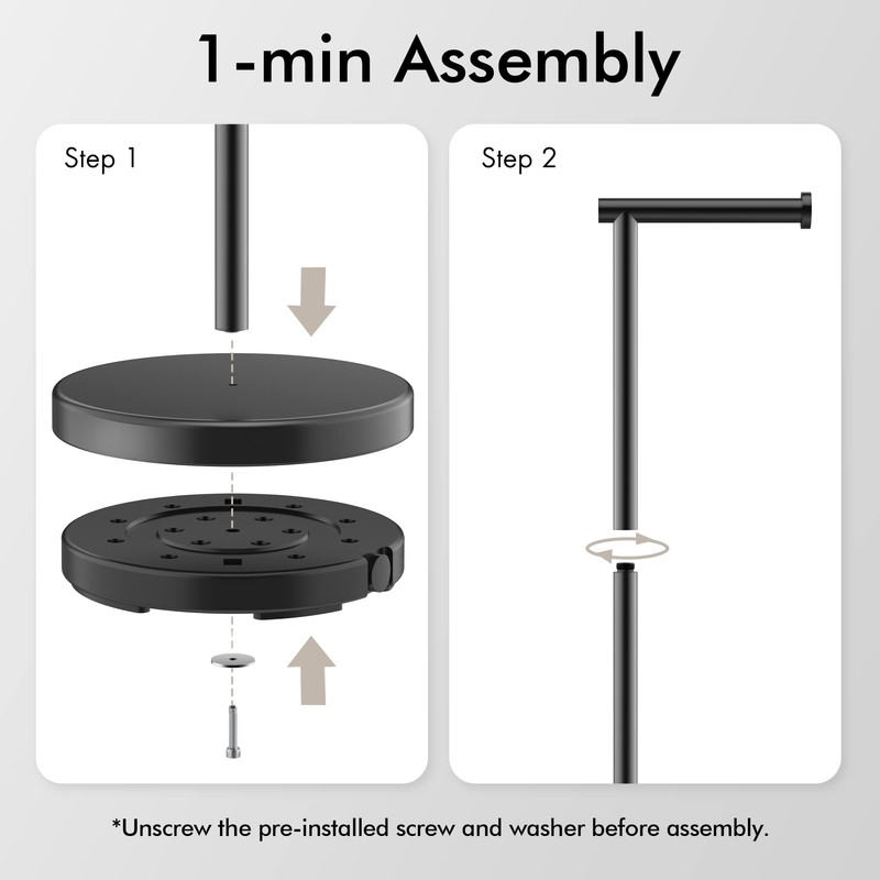 - [1-min Assembly] KES toilet paper roll holder can be assembled within 1 minute, with no drilling required. An allen key is included in the package for easy assembly. *Note: Unscrew the pre-installed screw and washer before assembly.