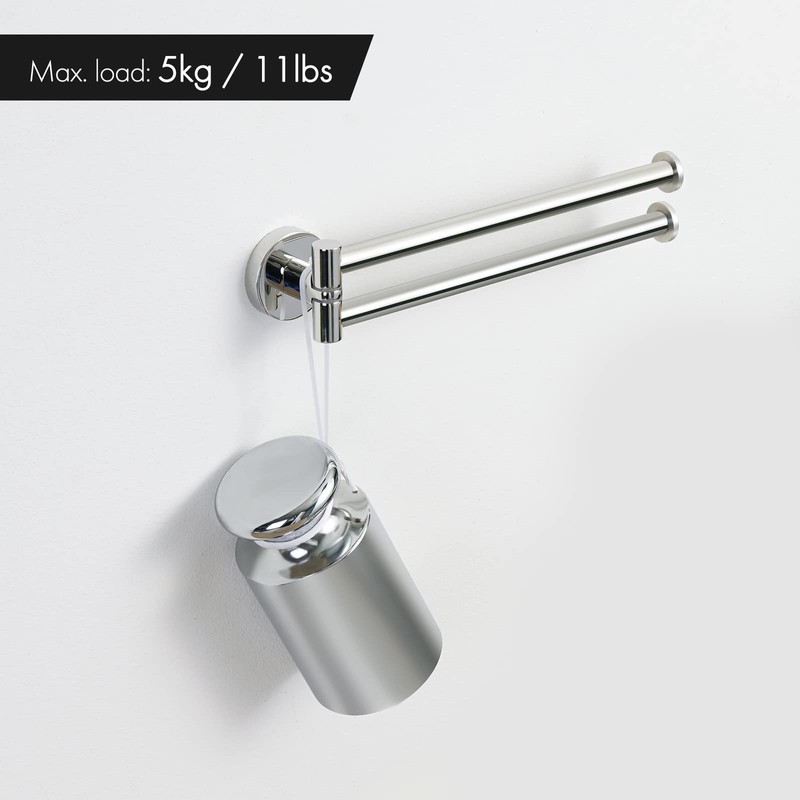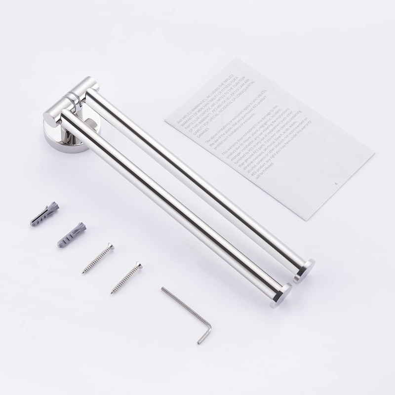 - Swivel Arms Design: This KES swivel towel rack features 2 swing arms that can smoothly rotate 180° so you can conveniently angle the bars any way you want them. Hang wet & dry hand towels at the same time without worrying they will touch each other and the towels can dry faster in different layers. In addition, the swivel towel bar is allowed to smoothly swing out for easy access to your towels. When not in use, push the arms back against the wall and save space.