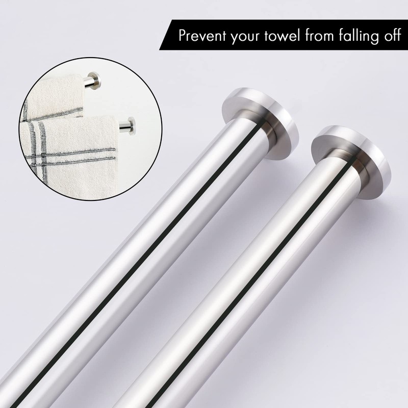 - Compact Design & Large End Cap: The overall length is 11.16" (281mm) and the usable length is 9" (203mm) so it will fit 13" x 13" (33 x 33cm) washcloths. The compact towel rack creates a dedicated area for towels without taking up too much space, ideal for small kitchens & bathrooms. In addition, to prevent your towel from falling off, KES thoughtfully added a large round end cap with a 24mm diameter so you don't need to worry about your towels falling off the end when you move the bars.