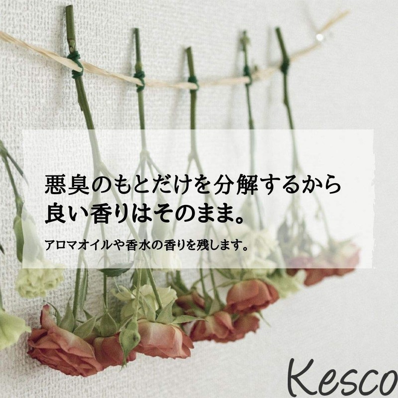 - (Deodorizing agent derived from good bacteria) Kesco is a revolutionary deodorizer that has never been before. Good bacteria act under the odor and breaks down and deodorizes from the root of the odor. Continuously use will become a normal bacteria in your home and improve the deodorizing effect
