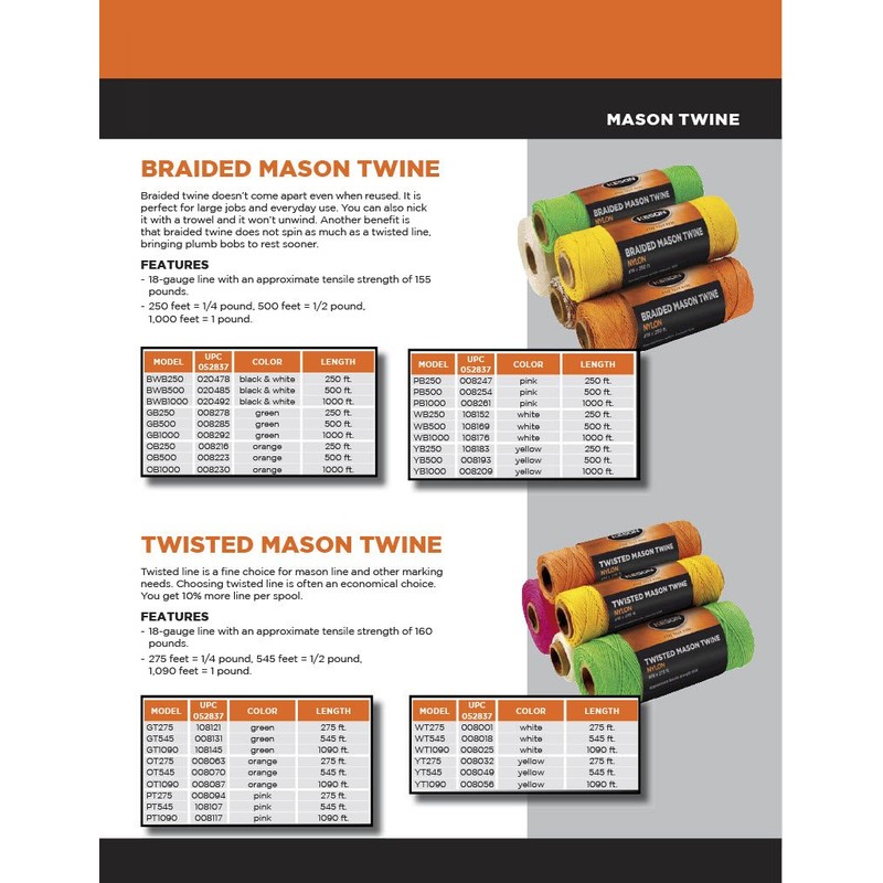 Keson GB500#18 Braided Nylon Mason Twine, Green, 500-Foot