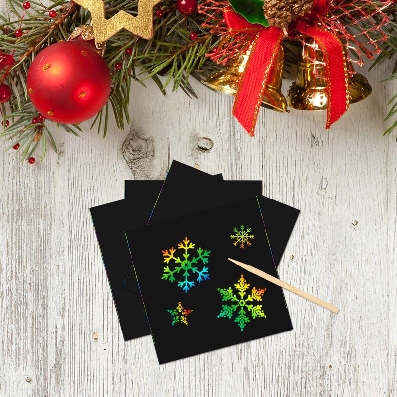 Kesote Scratch Art Scratch Paper Coloring Books, 100 Sheets, 3.3 x 3.3 inches (83 x 83 mm), Kids, Colorful, DIY, Handmade, Rainbow Painting, Includes 2 Bamboo Pens