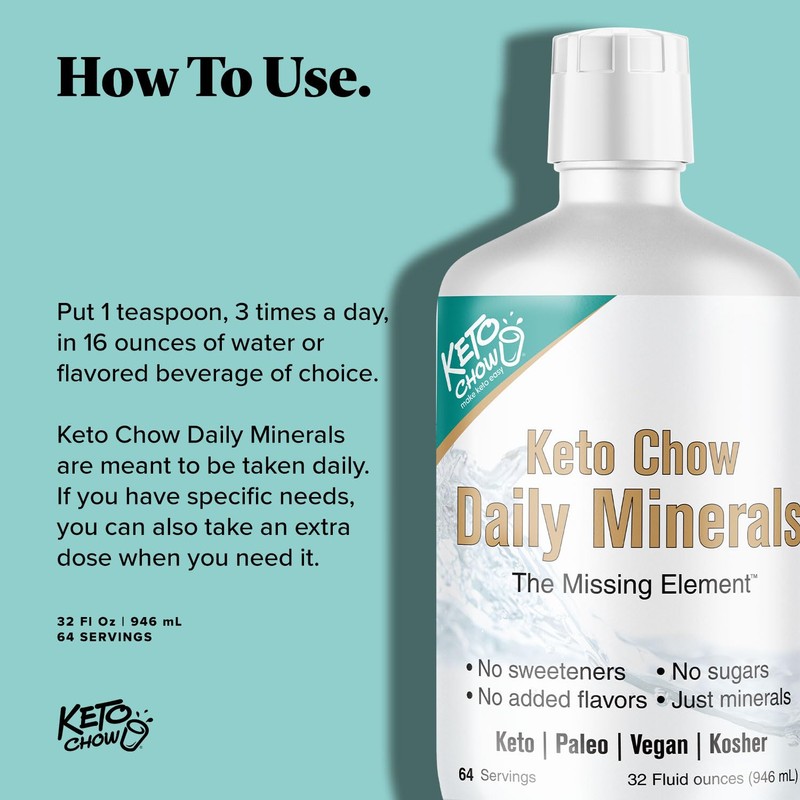Keto Chow - Daily Minerals Drops - Promotes Electrolyte Balance - Copper, Magnesium, Chromium, Zinc, Boron, Selenium - Zero Sugar - Kosher - Gluten Free - Vegan - Non GMO - 32 oz