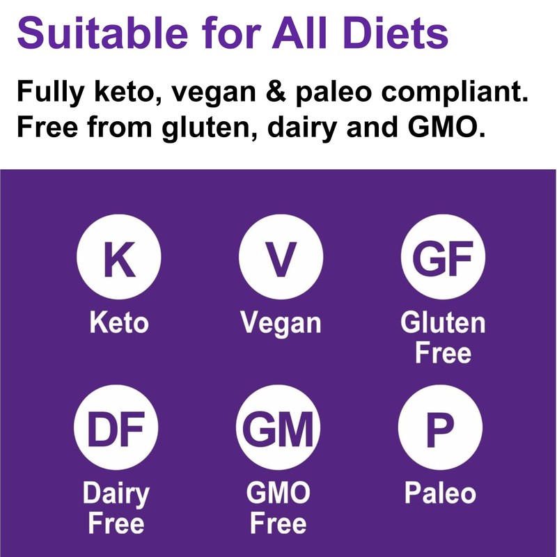 Diet type | Paleo, Keto, Vegetarian, Gluten Free, Vegan |