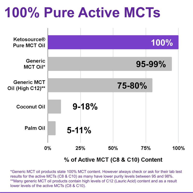 - MAXIMUM PURITY: High purity source of ketone-boosting MCTs with 99% or higher purity. This source combines C8 and C10 ketone-boosting MCTs (IMPORTANT NOTE: 100% purity is not possible with current technologies. Ask for 3rd party lab certificates to show true % of MCT purity)