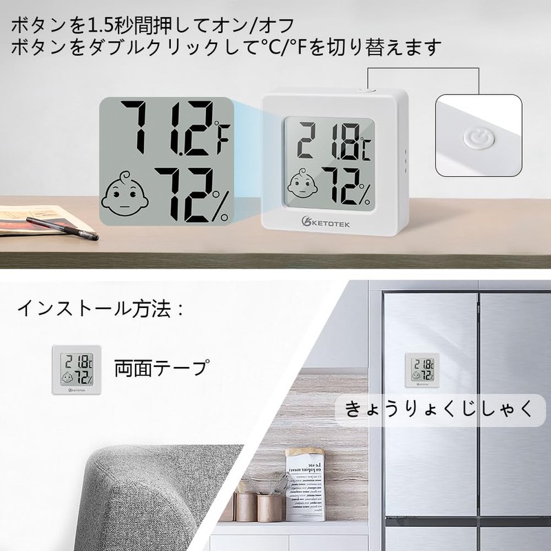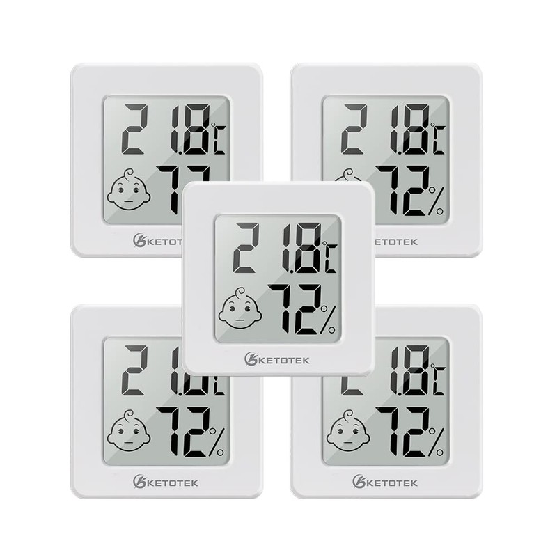 KETOTEK 5pcs Thermometer Hygrometer Indoor Digital Thermometer/Hygrometer Face Mark Wall Mount Desktop Magnet
