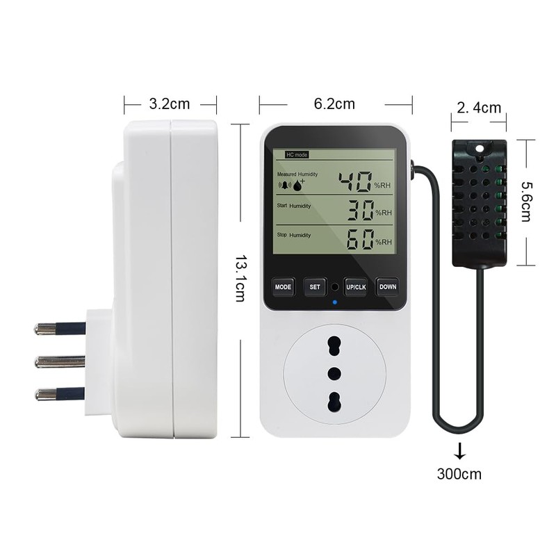 - Multifunctional: This moisture regulator socket with sensor has 4 operating modes (humidification mode, dehumidification mode; heating mode, cooling mode); temperature and humidity alarm function; temperature and humidity calibration; reset function; data memory function, can store all setting parameters after power failure; temperature unit ℃/℉; button tone settings, etc.