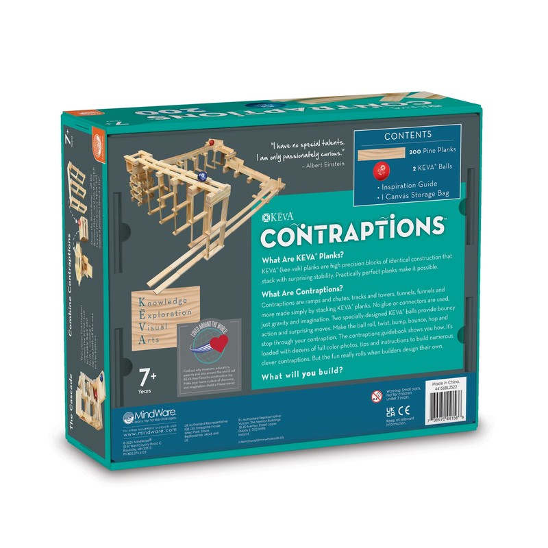 - NO HASSLE: With no glue or connectors needed, our KEVA Contraptions set is ready to play right out of the box. Forget the hassle of having to round up a laundry list of non-included tools. Simply unpack and build!