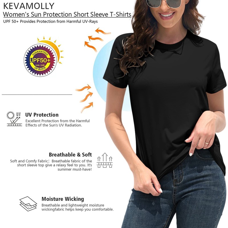 KevaMolly Black T Shirts for Women UPF 50+ Short Sleeve Casual Summer Basic Tops Trendy Loose Fit TShirt