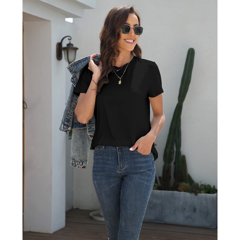 - Soft and Breathable Material --- Solid Basic T Shirts for women made by 90%Polyester,10% Spandex,super soft, comfortable, lightweight fabric is perfect for daily Wear or Underwear,Casual Daily/ Working out /Travel/ Home/ Vacation/ Shopping/ Street/ Party/ Outdoor/ Club to Wear,stays cool to the touch.