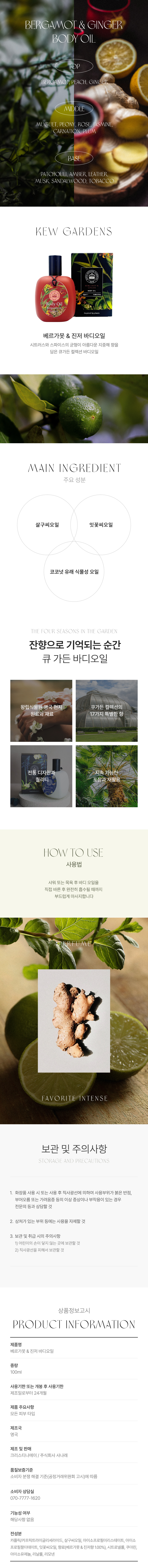 KEW 영국 직수입 베르가못진저 바디오일 100ml 1+1세트 선물 향수 향기 잔향