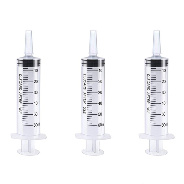 KEWAYO 3 Pack 60ml/cc Plastic Syringe Liquid Measuring Syringe Tools Individually Sealed with Measurement for Scientific Labs, Measuring Liquids, Feeding Pets, Medical Student, Oil or Glue Applicator