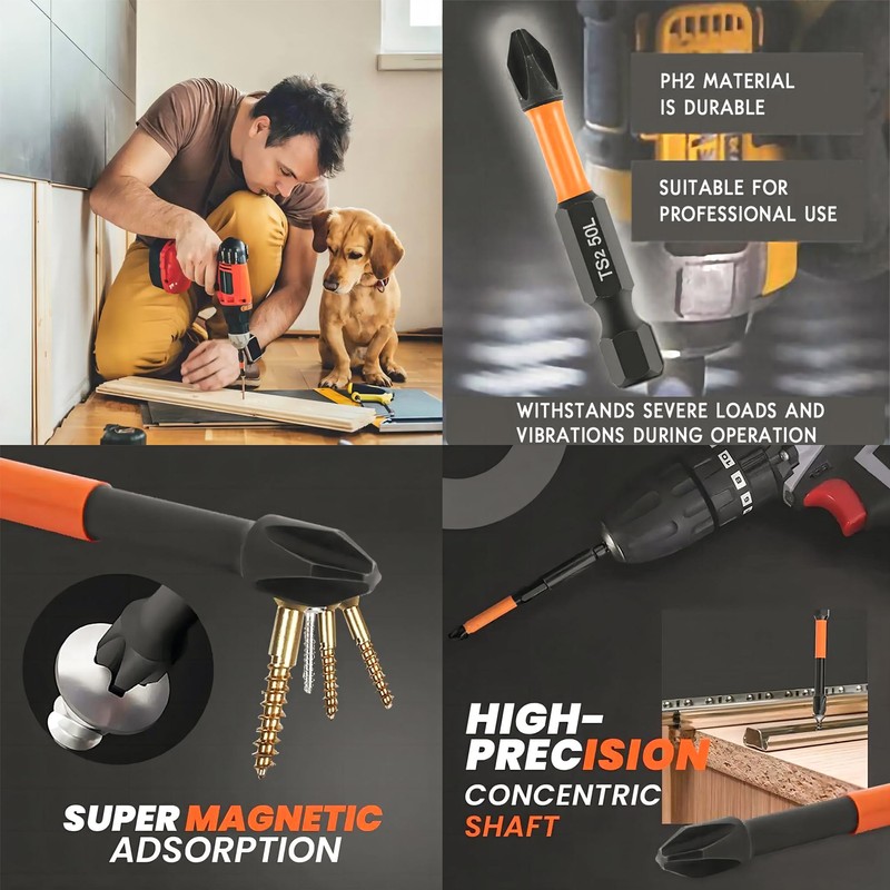 - Strong Magnetic Bit: This impact phillips screwdriver bits has stronger magnet than others, it can the screw easily and quickly, and fix it to prevent the drill bit from slipping; Save even more time in the installation