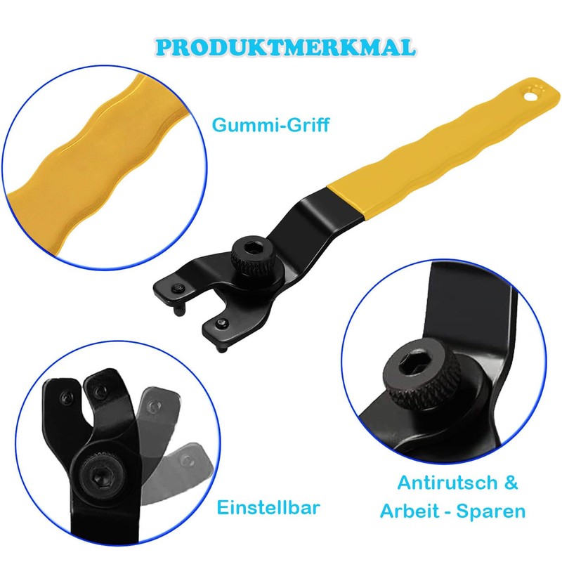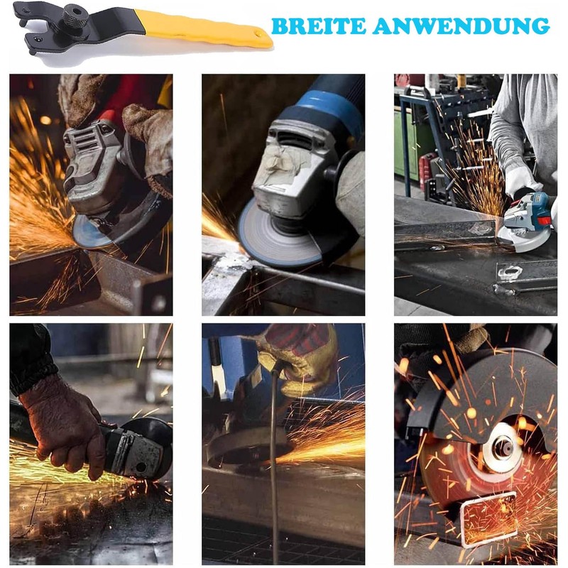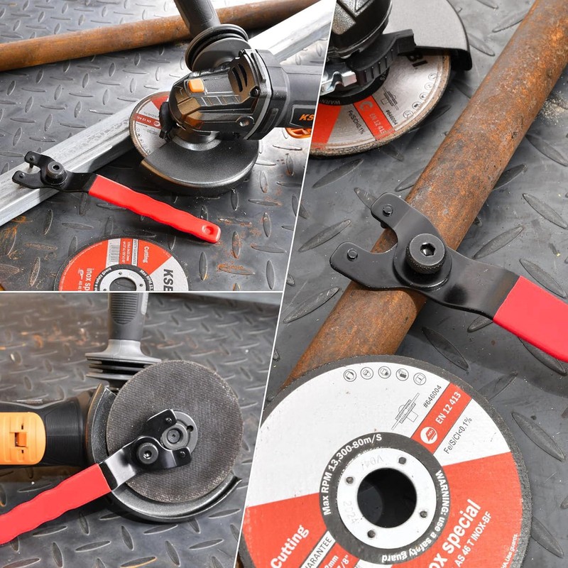 - Easy to use: first adjust the width of the wrench according to the hole of the pressure plate, then press the rear button of the angle grinder and turn the key counterclockwise. and remove and replace old worn pieces or discs.