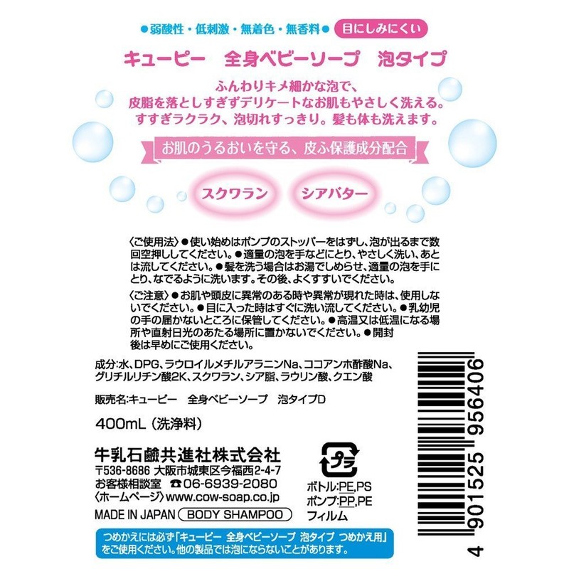 Kewpie Full Body Baby Soap, Foam Type, Pump, 13.5 fl oz (400 ml)
