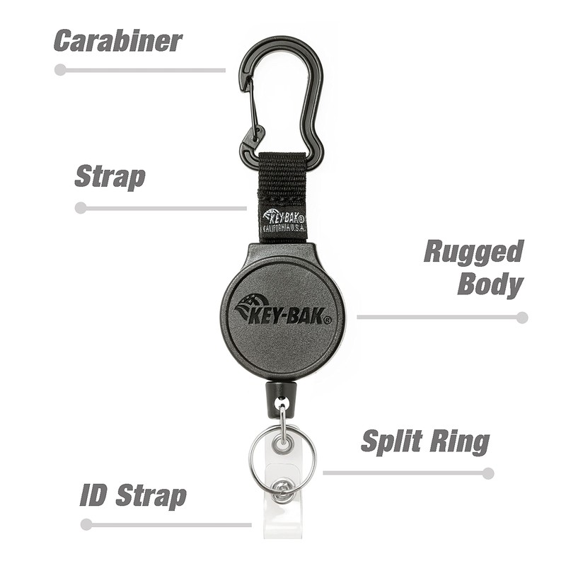 KEY-BAK MID6-Duo Heavy Duty Badge Reel and Keychain That Holds 10 Keys, Carabiner, Black, Medium (0006-0824)