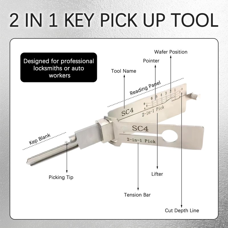 - Easy to use: our SC4 stainless steel key decoder is easy to use and easy to use. Whether you are a professional or an everyday user, it is easy to control. The simple and intuitive design of auto lock pick allows everyone to learn the operation quickly.