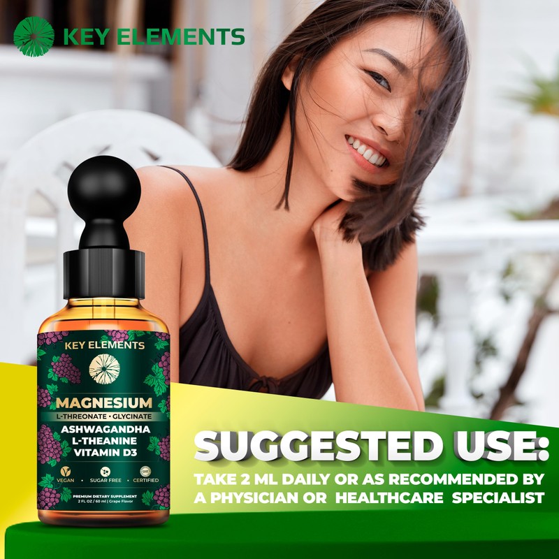 KEY ELEMENTS Liquid Magnesium L-Threonate with Magnesium Glycinate for Sleep | Ashwagandha with L Theanine and Vitamin D3 Magnesium Supplement | Ashwagandha and Magnesium with L-Theanine