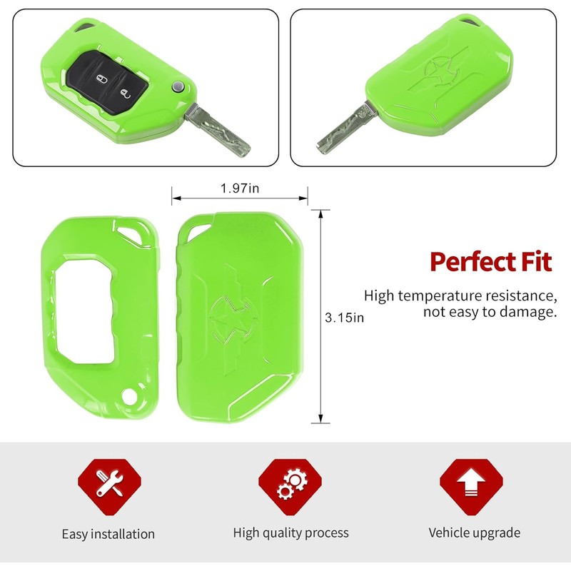 Key Fob Cover Case Protector Fit for Jeep Wrangler JL JLU Gladiator JT 2018-2025 (Green)