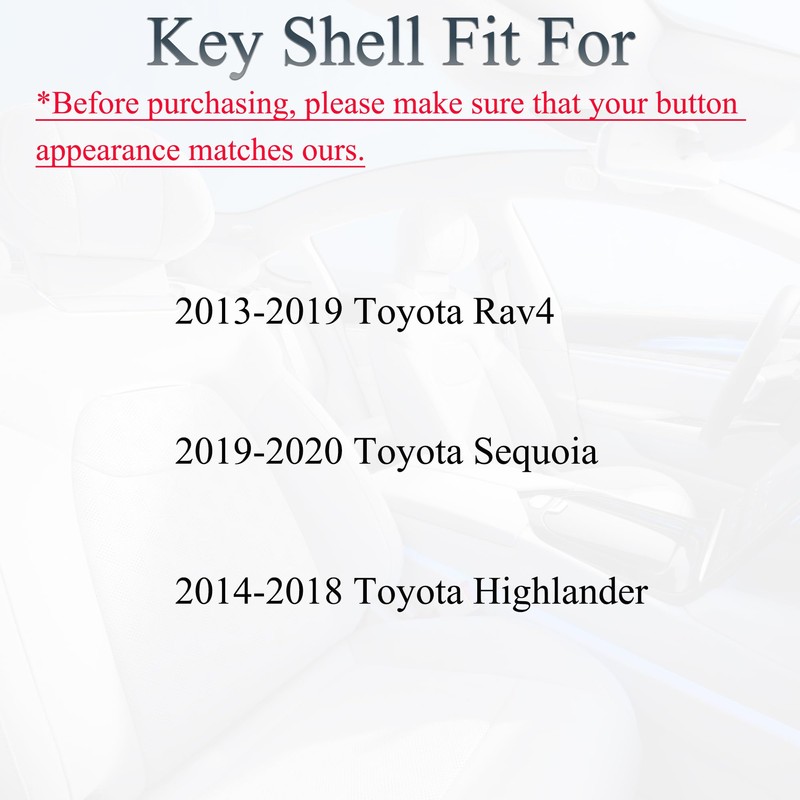 • 【Fitment】An empty key fob cover shell replacement for 2013 2014 2015 2016 2017 2018 2019 Toyota RAV4/2019-2020 Toyota Sequoia/ 2014-2018 Toyota Highlander.