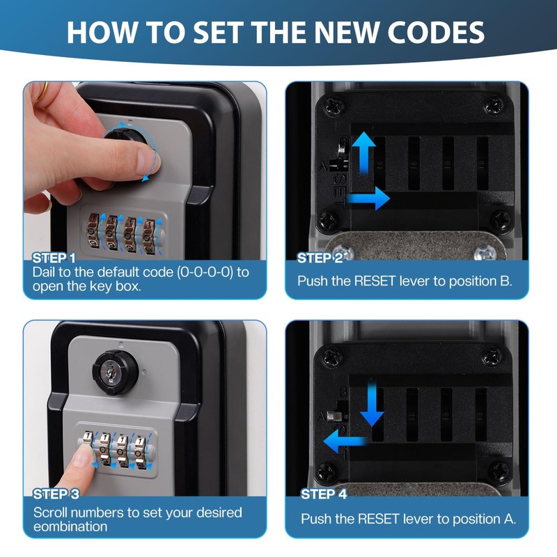 • Special feature: This combination key box comes with a key that can open the box. When you forget the code, you can use the key to open the security key lock box and then retrieve the forgotten code.