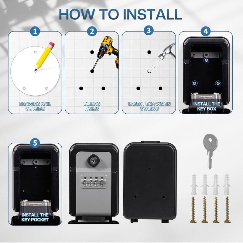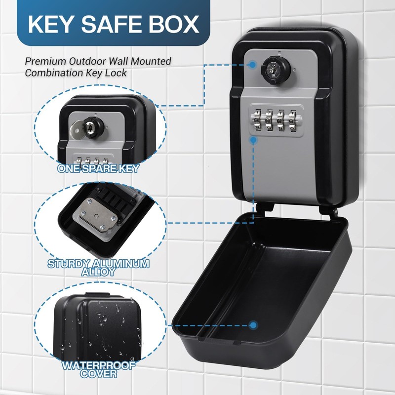 • Secure Storage: Upgraded wall-mounted key safe box with 4-digit combination lock for secure storage of keys, documents, or valuables.