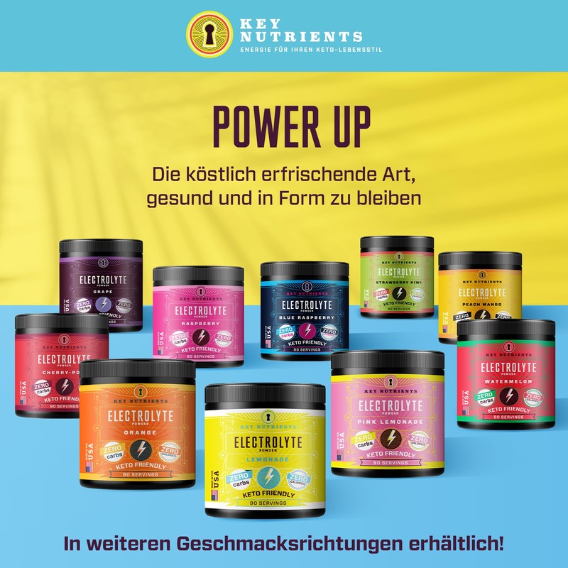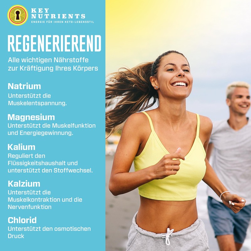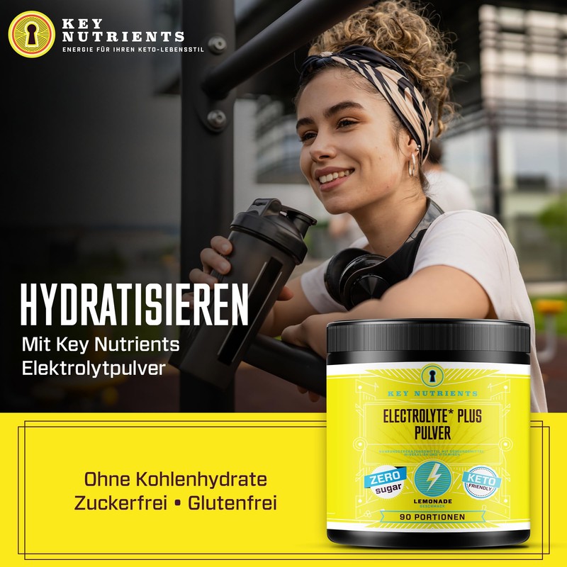 - Wichtige N?hrstoffe Auffllen & Hydrieren - Fhlen Sie sich nach dem Training ausgelaugt? Beim Schwitzen kann Ihr K?rper neben Giftstoffen auch wichtige Elektrolyte verlieren. Fllen Sie wichtige Vitamine wieder auf und hydrieren Sie Ihren K?rper mit dem ultimativen Keto Elektrolyten-Pulver von Key Nutrients. Es ist das perfekte Getr?nk nach dem Sport. Stillen Sie Ihren Durst, neutralisieren den PH Wert Ihres K?rpers und genie?en den s?en Limonaden Geschmack. Erfrischen Sie sich!