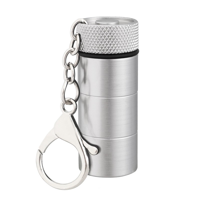 Keychain Box Container Case,Mini Aluminum Container Case with Spoons,Portable Travel Containers with Key Ring, Waterproof Pocket Boxes, Perfect for Daily Essentials and Outdoor Adventures, Silver