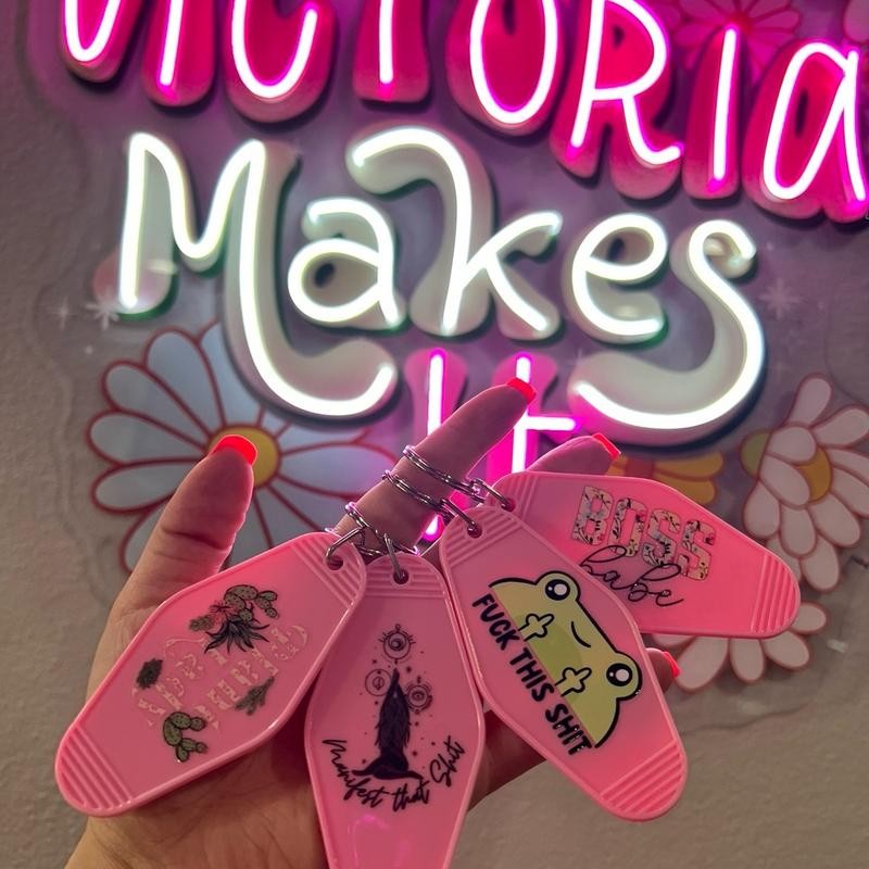 Introducing our charming Keychain - a must-have accessory for those on the go! Pick your favorite design and keep your keys organized in style. Our Pink Keychain is a stunning option for those who love all things pink. It's made of high-quality materials that promise to be durable, sturdy, and long-lasting. The keychain features a simple yet elegant design that's perfect for everyday use. Choose this pink keychain to add an eye-catching accessory to your ensemble or gift it to someone special. Whatever the occasion, our Pink Keychain is sure to make an impression. Organize your keys in style with our Pink Keychains - order yours today!