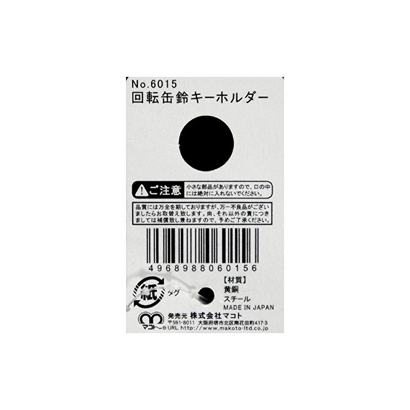 - Total Length Size (approximate): 2.6 inches (65 mm); Bell Diameter (approximate): 0.5 inches (13 mm); Material: Brass, Steel; Applications: Keywords: Key-Horuda Bell Bell Can Bell Keychain; Manufacturer: Macot; Category: B130007; Control Unit: 12 pieces/600 pieces; Quantity: 1pcs