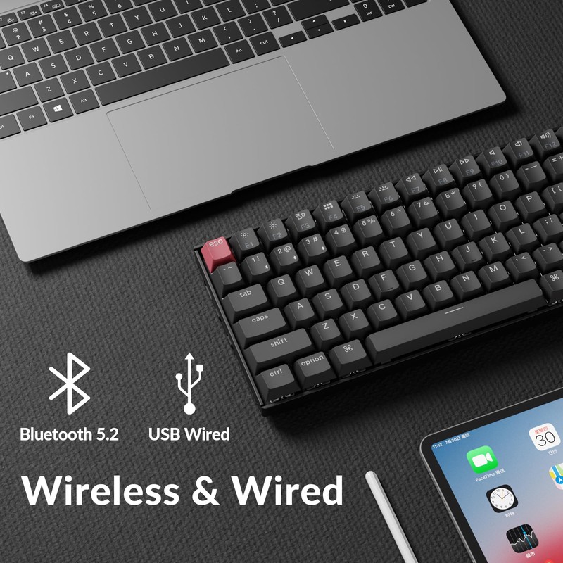 - Bluetooth 5.2 & Wired Modes: Seamlessly switch between devices with Bluetooth 5.2, or wired modes. Connect up to 3 devices at once and enjoy ultra-low latency with a 1000Hz polling rate in wired modes, making it ideal for responsive gaming and efficient multitasking.