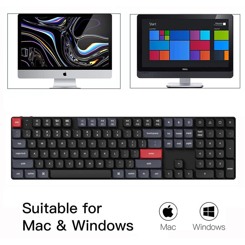 • Suitable For All Devices - With a unique Mac layout while compatible with Windows, the K5 Pro has all essential multimedia and function keys you need. Extra keycaps for both Mac and Windows operating systems are included.