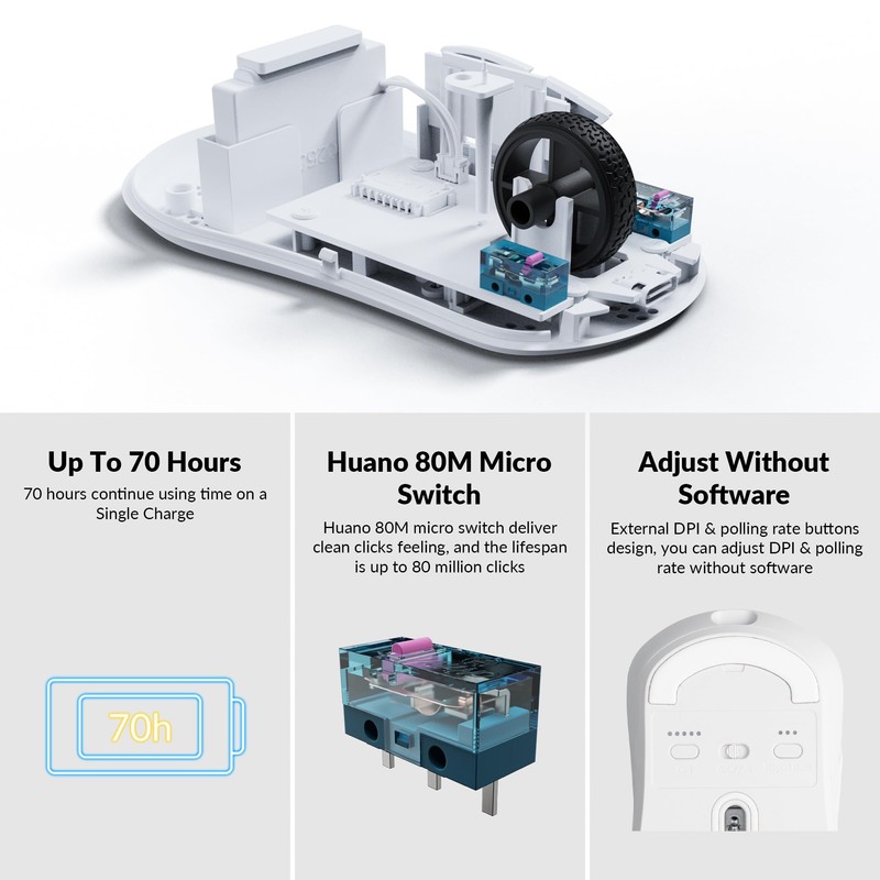 - Built to Last - The M3 Mini (1K version) can works up to 70 hours, withstand up to 80 million clicks micro switch lifespan together with a durable Teflon mouse feet that built to last. Ergonomic curved design ensures a comfortable grip for a long time.