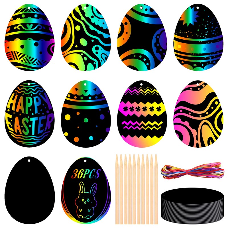 - Package: You will get 36 pieces of Easter egg scratch art, 10pcs wooden stylus, and 36 pcs colorful ribbons, you can freely DIY these Easter scratch art.