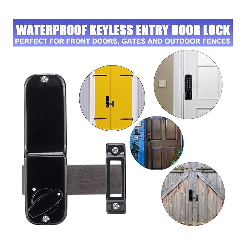 - ใMore Durable & WeatherproofใThe digital outside gate lock is made of #304 stainless steel, and the enhanced corrosion-resistant performance on surface is 5 to 15 times that of other materials. The keypad deadbolt lock is particularly hard, more waterproof, sunproof, and rustproof.