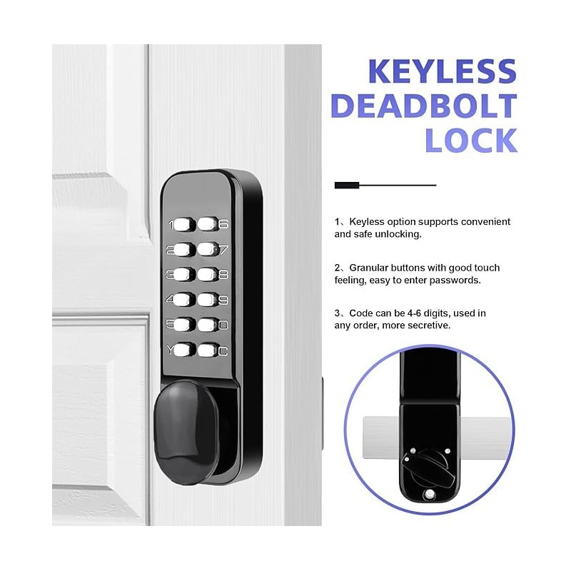 - ใEasy to Set Up & DIY InstallใEasy to set and change the codes. Combination can be 4-6 digits composed of numbers or alphabets except for the C key (no repeats), and be used in any order. 12 push bottons greatly improve the security of mechanical door locks. Granular buttons with good touch feeling, are easy to enter passwords.