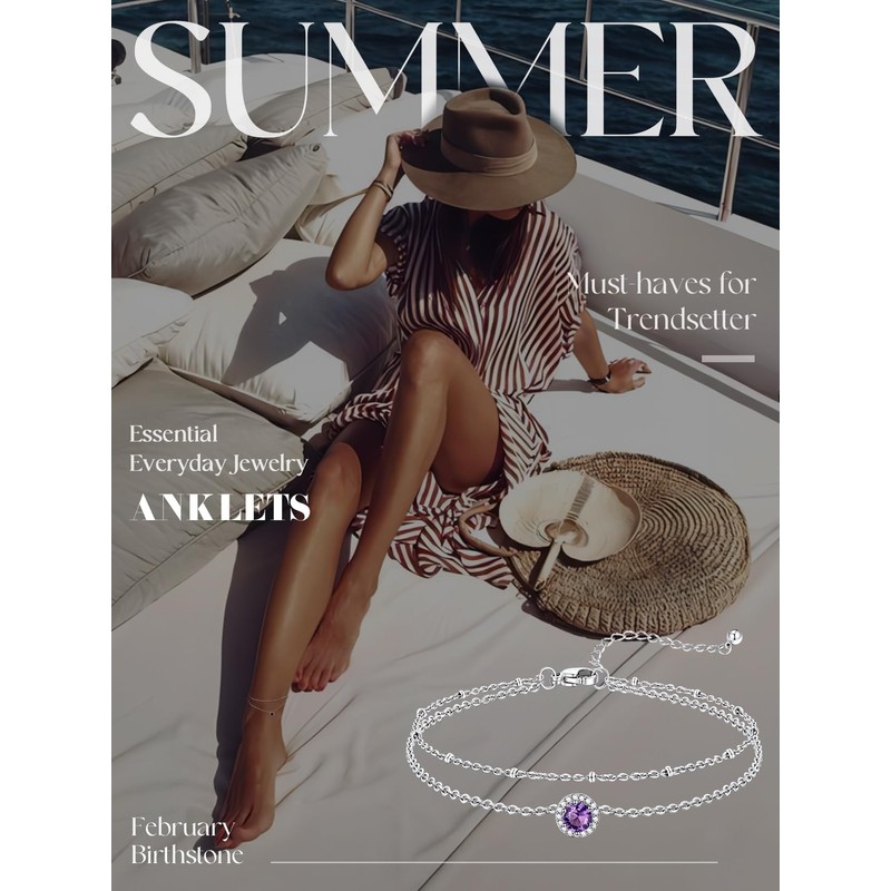 KeyStyle Stainless Steel Foot Chains for Women February Birthstone, 8.5"+2" Adjustable with AAAAA+ Amethyst – Spa Vacations, Yoga Retreats & Valentine’s Day Jewelry