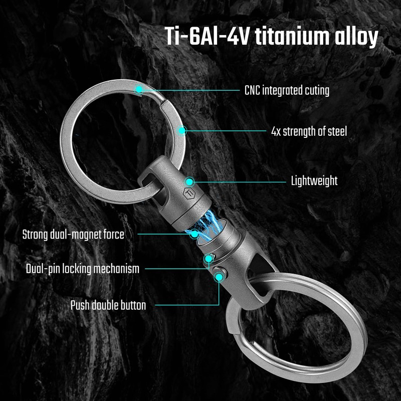 KeyUnity KA45 Magnetic Titanium Quick Release Keychain, Detachable Dual Key Ring, 360° Rotatable Key Organizer, Car Key Holder, Secure Lock System Rotating Titanium Keychain Ringslinker for Carabiner