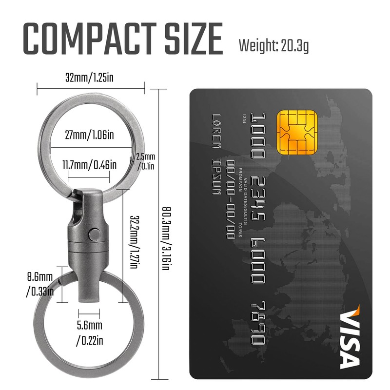 Lightweight and Durable: Made of titanium alloy, it is lightweight and does not increase the burden on the keychain, while maintaining durability and strength.