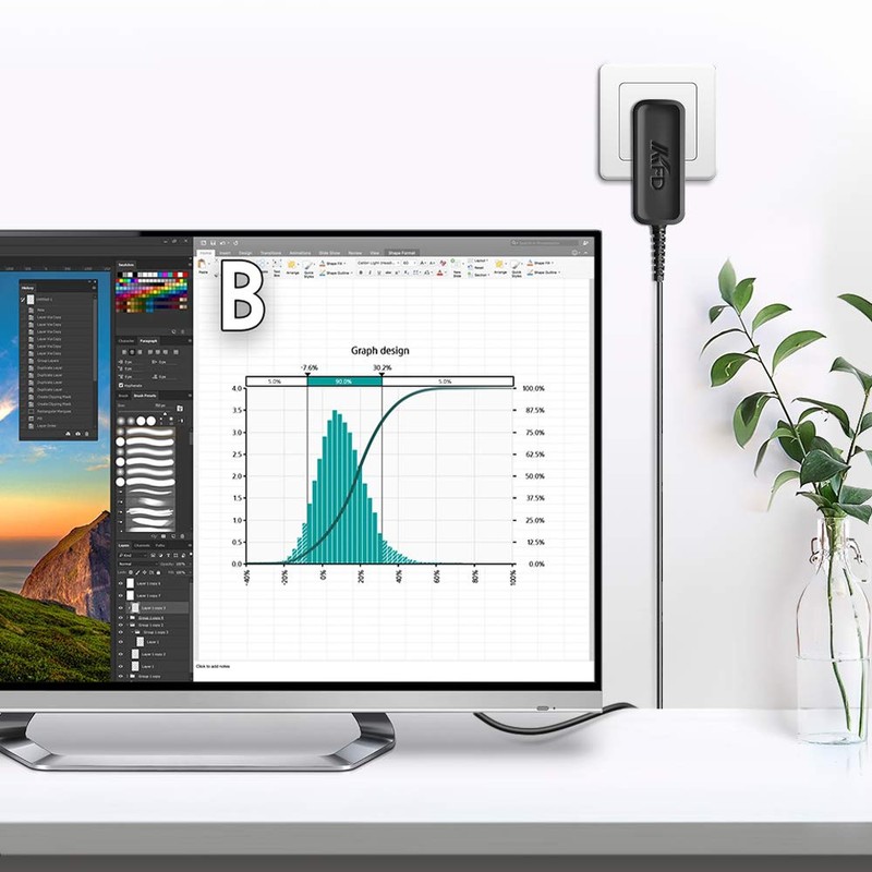 KFD Power Supply 19V 1.3A-1.6A Charger for LG Monitor ADS-40FSG-19 19025GPG-1 24MB56HQ-B 22EA53VQ IPS234V-PN EAY62768607 EAY62768621 19025GPCU-1 EAY622 768661 2 charging cables ADS-25FSG-19