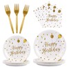 KFJBPB KFJBPB 96PCS Happy Birthday Plates and Napkins Party Supplies, White and Gold Disposable Paper Plates and Napkins with Forks Tableware Set for Birthday Party Decorations 24 Guests (Birthday White)