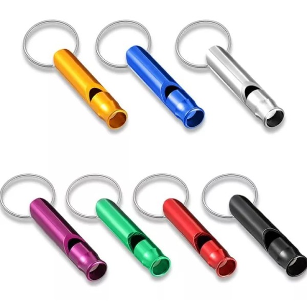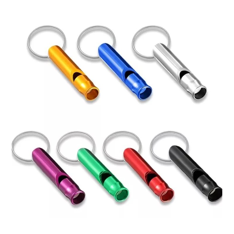 Silbatos fuertes: el silbato de supervivencia de aleación de aluminio para exteriores puede hacer un sonido grande y brillante, que se puede escuchar desde una larga distancia, muy útil para diversas situaciones de emergencia; durante viajes al aire libre, puedes confirmar la dirección para ti, evitar perderte, encontrar compañeros, etc
