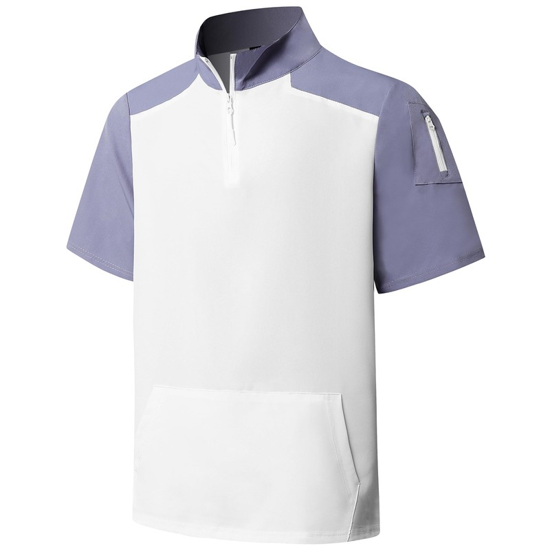 KGGEOO Wind and Water Resistant Cage Jacket Short Sleeve Golf Jacket Quarter Zip Pullover with Sleeve Pocket for Workout White